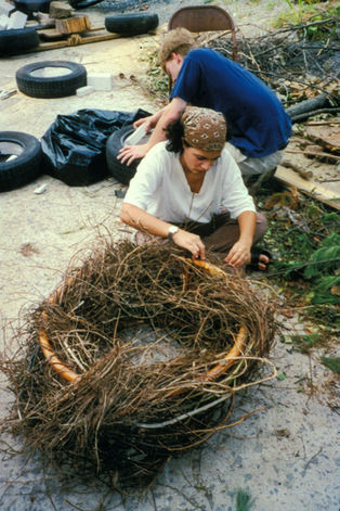 Ms. Hull is a sculptor and installation-artist whose work specializes in constructing site-specific habitats for wildlife, often as the result of well-organized, collaborative workshops. Her workshop in September '99 focused on the construction of six floating-habitat public "eco-sculptures" at several pond sites. The anticipated artworks are non-permanent, biodegradable structures made of local natural materials, and are intended to function as habitats for local wildlife. The art works will be temporary installations that will degrade naturally over a period of six months to a year or longer.